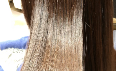縮毛矯正やトリートメントとは違い、カラーのみで艶を出し、くせを抑えます。